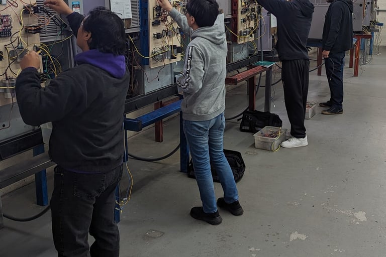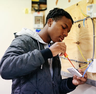 Students are introduced to the fundamentals of electrical systems, including wiring, circuitry, safety procedures, and blueprint reading. Through hands-on training and mentorship, participants learn how to assist with residential and commercial electrical work. This pathway prepares students to enter formal apprenticeships and pursue licensure as electricians.